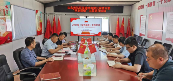 为深入开展党史学习教育活动,全面抓好贯彻落实,根据上级党委通知要求,5月28日,山东善泓环保建材有限公司党支部开展了“学史崇德”主题党日活动,引导全体党员“立政德、明大德、守公德、严私德”,赓续共产党人精神血脉,永葆对党的忠诚之心、对人民的赤子之心,永葆党的先进性和纯洁性。