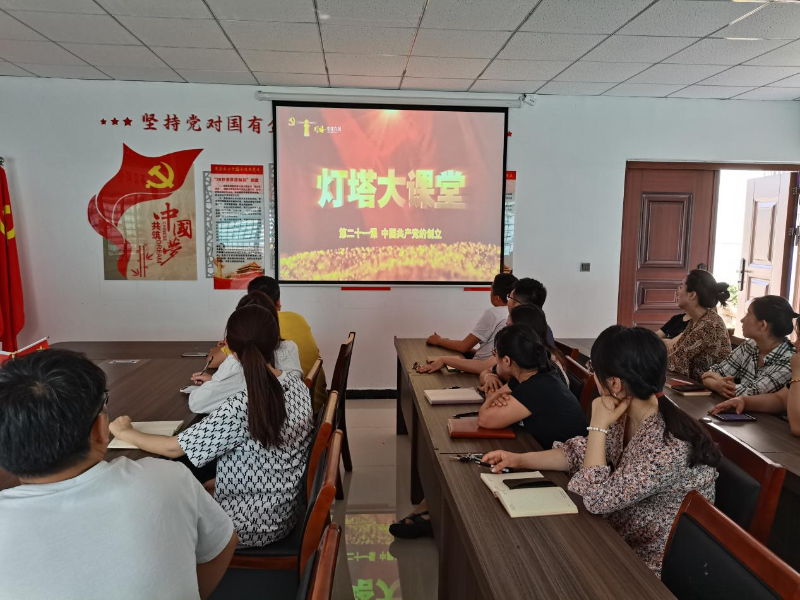 6月8日上午,山东鸿运水利工程有限公司党支部开展“灯塔大课堂”第二十一课学习会议,组织党员、群众以及项目部的一线人员学习观看了“灯塔大课堂”第二十一课---《中国共产党的创立》。