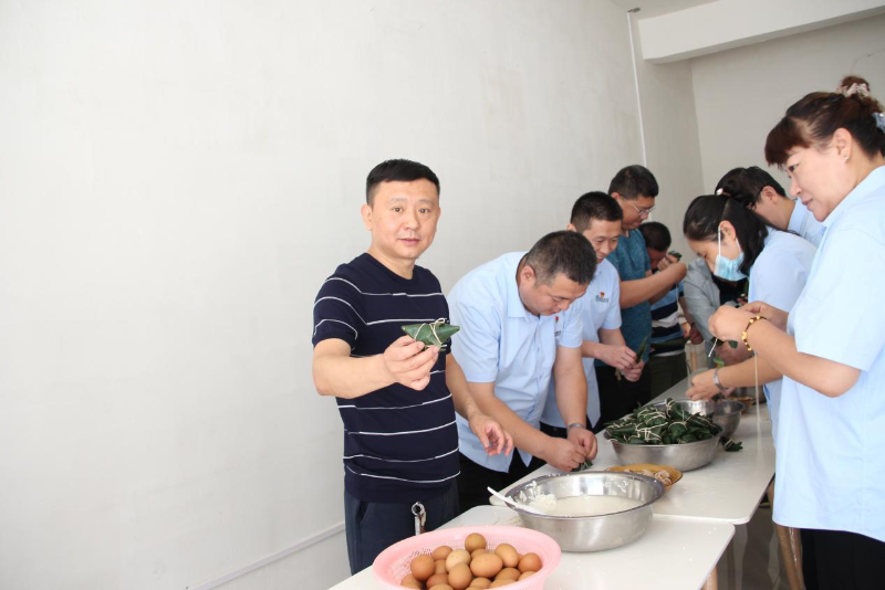 在蟠龙河项目经理部,支部书记与公司党员职工一起包粽子,大家围在一起,欢声笑语的聊端午、话习俗,体会浓浓的节日氛围。粽子煮熟后,党员职工将粽子包装好,送到蟠龙河项目施工班组,让他们真心感受到企业大家庭的关怀和温暖,增加了一线员工对企业的认同感和归属感。