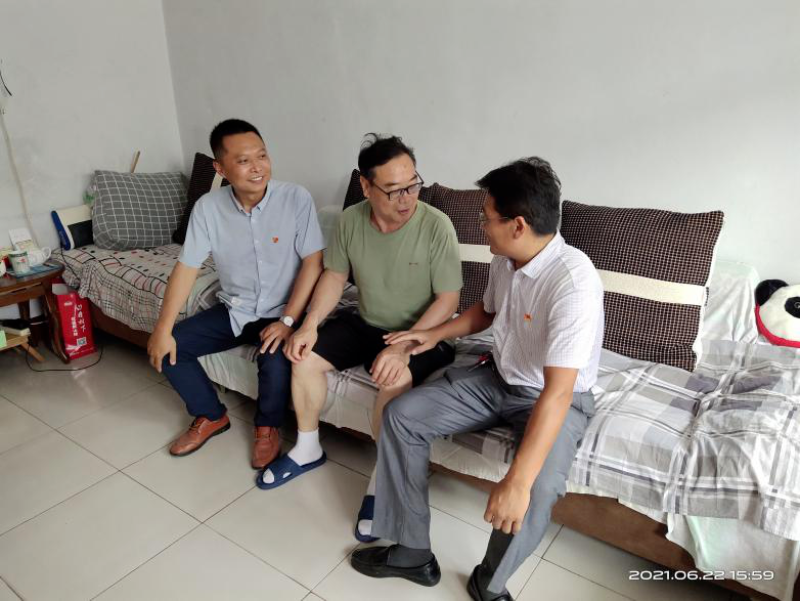 一声问候暖人心,一句嘱托递深情!在全市上下喜迎党的百年华诞之际,6月22日下午,枣庄市水利勘测设计院党支部副书记韩业明和党务工作者黄彬,走访慰问老党员老干部,向他们转达了集团公司党委的关怀和温暖,代表设计院党支部向他们致以亲切问候和崇高敬意。设计院党支部一行人员带着责任、带着感情关心关爱老党员老干部,营造尊重关爱老党员老干部的良好社会氛围,自觉传承党的红色基因、奋进新的征程。