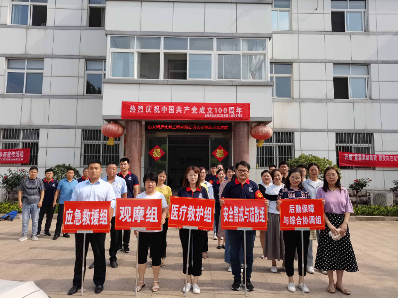 现场模拟公司办公楼内突然失火、黑峪水库某垂钓者在水库岸边垂钓不慎落入水中等科目,演练下设应急救援、观摩、医疗救护、安全警戒与疏散、后勤保障与综合协调等5个工作小组,各工作小组根据预案分工开展救援工作,顺利完成了各项工作任务,演练达到了预期效果,取得圆满成功,最后安全环保部副部长徐磊在现场为所有参演人员讲解了现场急救方法及其注意事项。