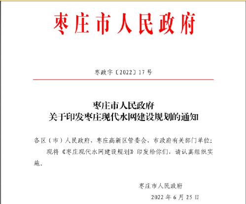 枣庄市人民政府近日印发《枣庄现代水网建设规划》,《规划》提出为加快推进枣庄现代水网建设,推动全市新阶段水务工作高质量发展,全面增强水资源优化配置、水旱灾害防御、水生态环境保护和现代水务调控能力,实现奋力开创新时代现代化强市建设新局面,为“工业强市、产业兴市”战略实施提供有力的水安全保障,编制《枣庄现代水网建设规划》。规划期为2021年至2035年,远景展望到本世纪中叶。