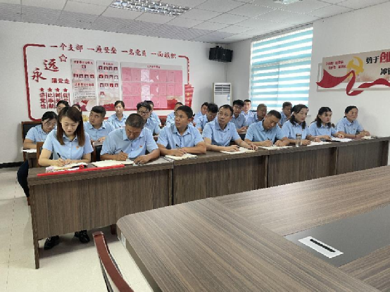 李维书记首先听取了党支部书记张新同志关于公司上半年党建工作情况汇报,并提出意见建议,随后在公司党员活动室为全体党员讲了一堂生动深刻的警示教育课。