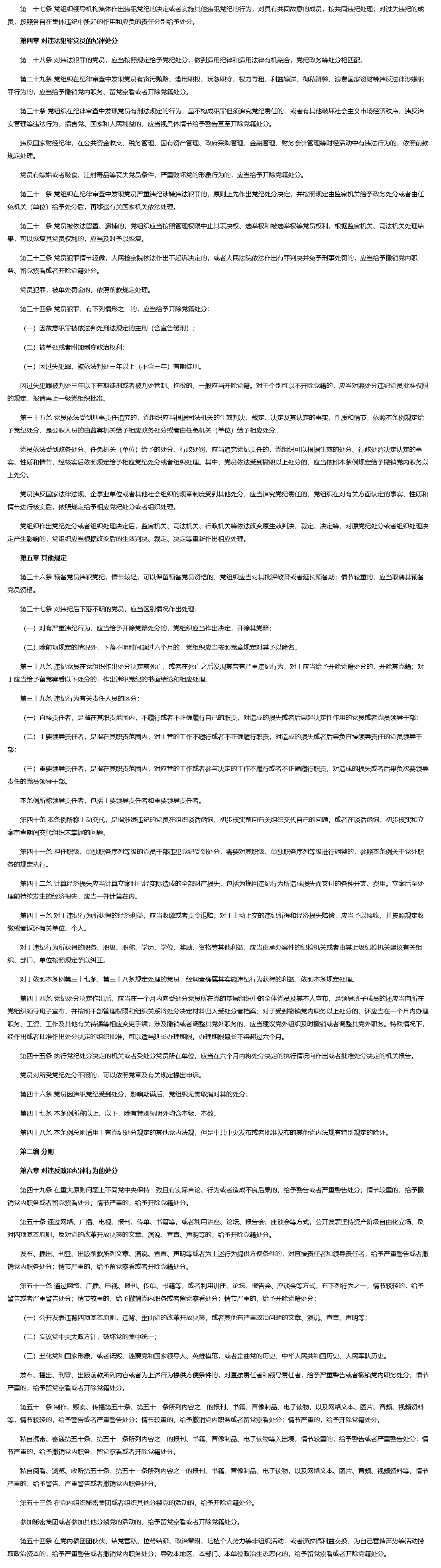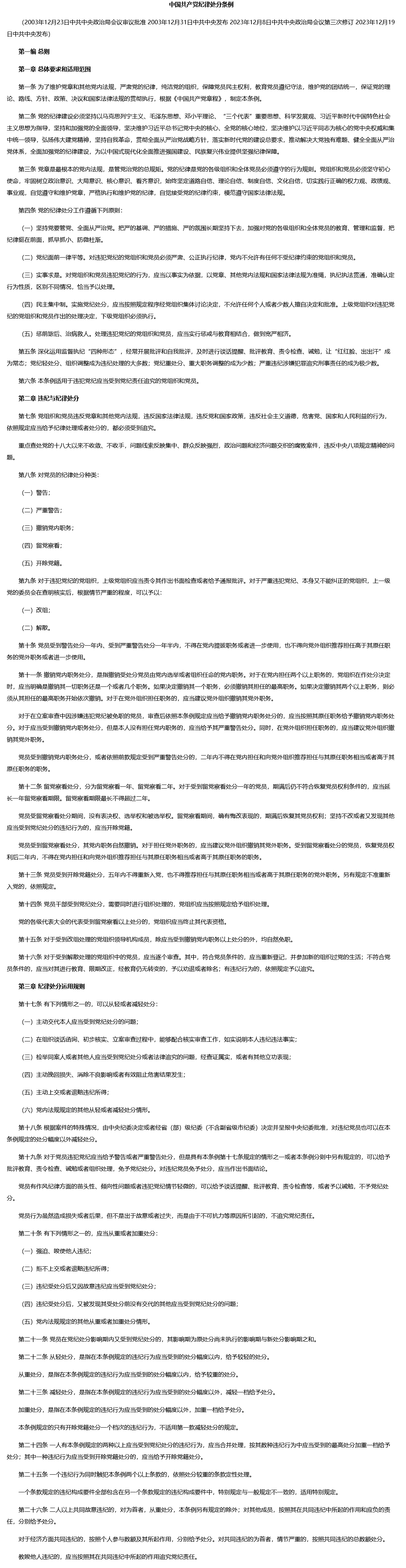 中共中央印发《中国共产党纪律处分条例》