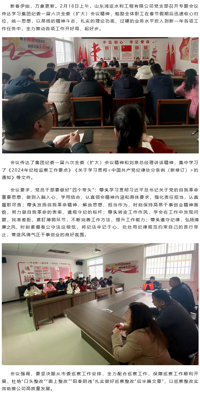 鸿运党支部召开专题会议传达学习集团纪委一届六次全委(扩大)会议精神