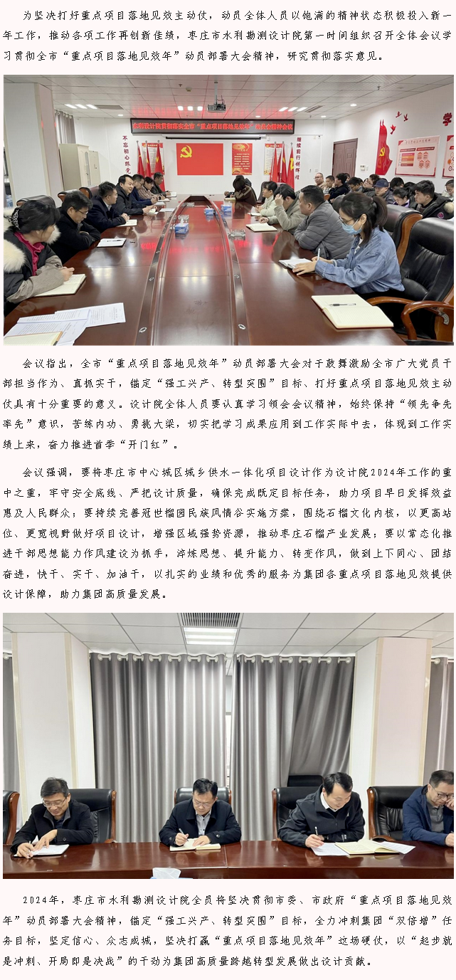 设计院召开全体会议学习贯彻全市“重点项目落地见效年”动员部署大会精神