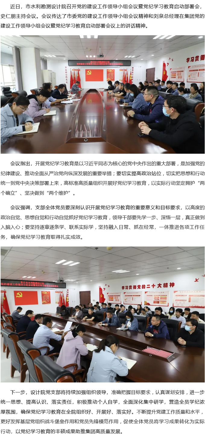 市水利勘测设计院召开党的建设工作领导小组会议暨党纪学习教育启动部署会