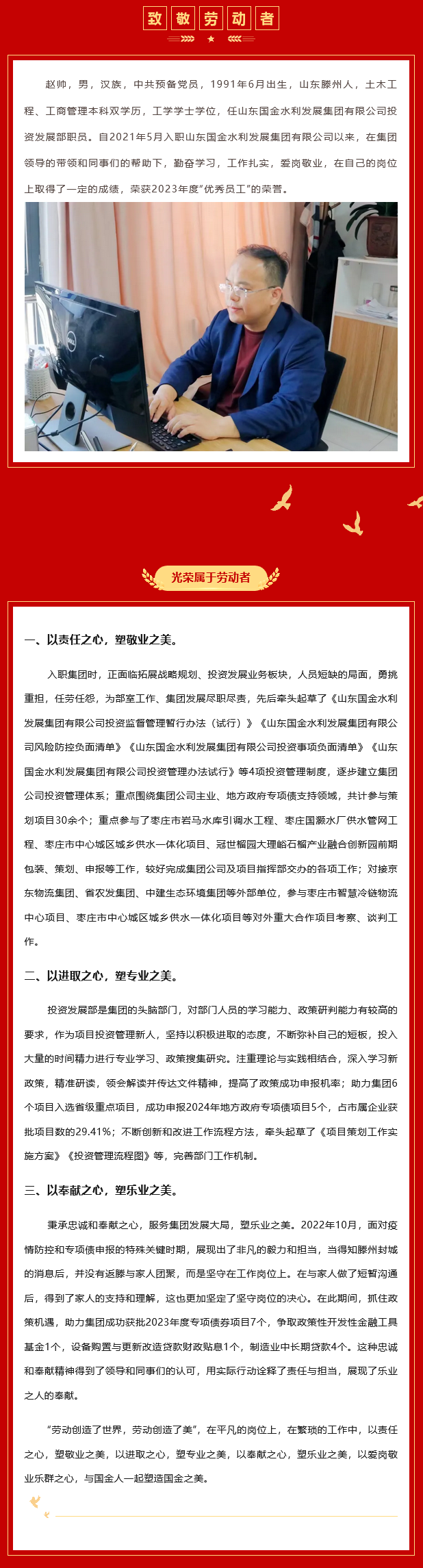 “最美国金劳动者”个人事迹——赵帅